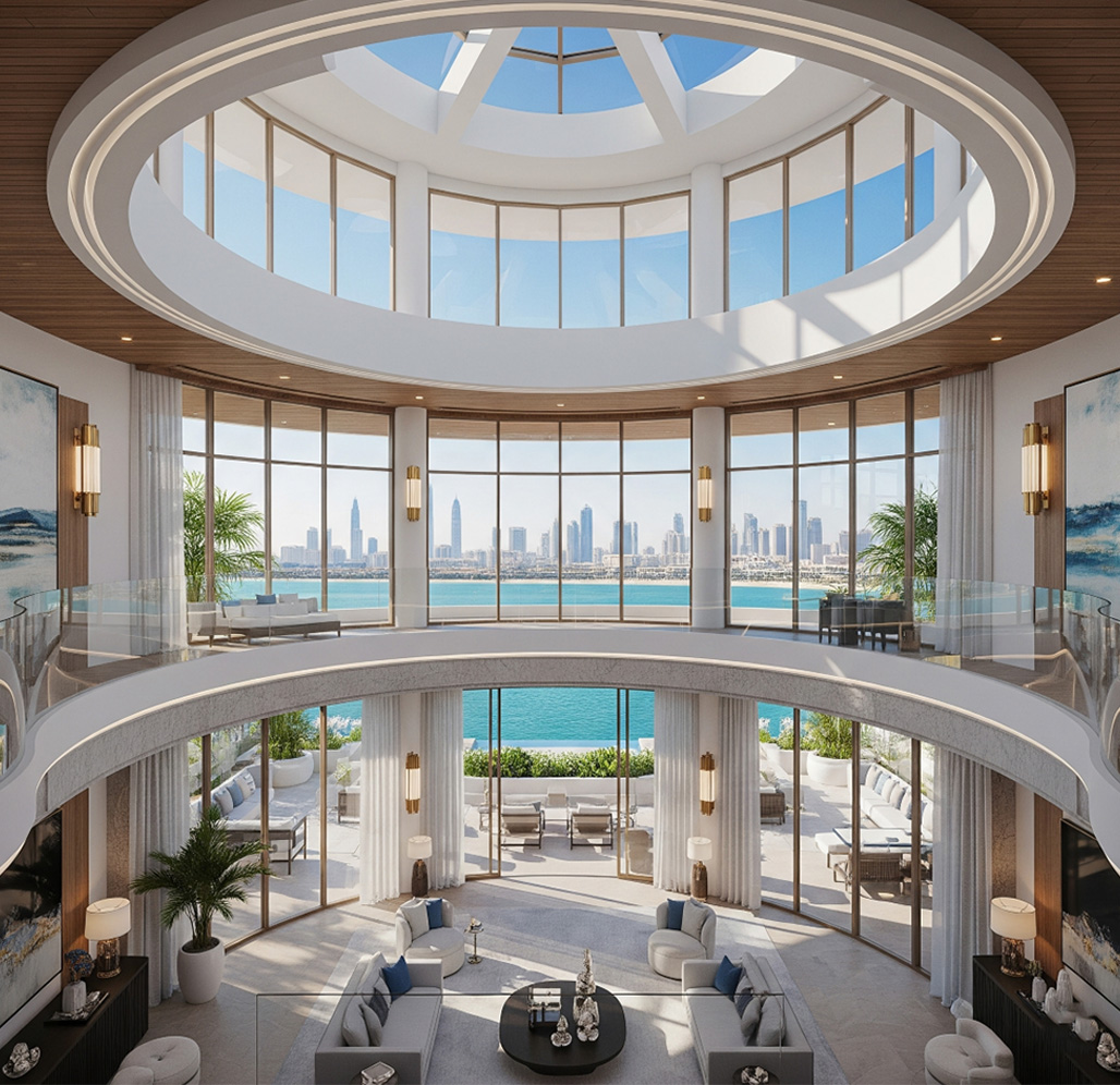 Experience unparalleled living in this immaculate high number 4-bedroom Central Rotunda villa, perfectly designed for those who love to cook with the benefit of an extra kitchen. This exceptional property is vacant on transfer and boasts a prime location near the tip of the frond, offering breathtaking wide, open sea views, the refreshing flow of freshwater, and magnificent vistas of the Doha Skyline.